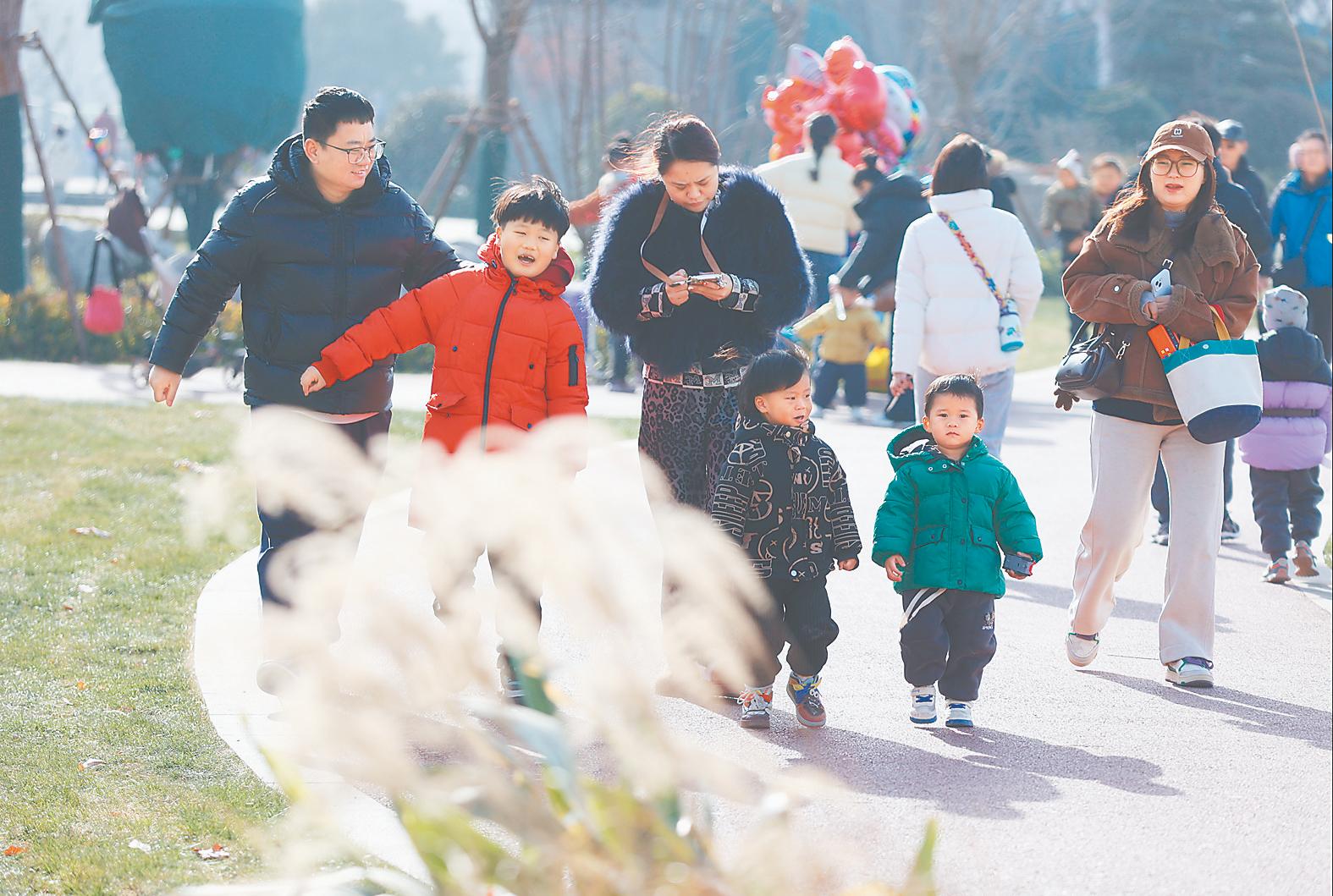 1月5日,我市天气晴好,许多市民纷纷走出家门到户外游玩。在金明池公园,随处可见市民运动健身、散步聊天、嬉戏玩耍,享受和煦阳光,体验休闲乐趣。(记者 袁洋 李浩 摄)